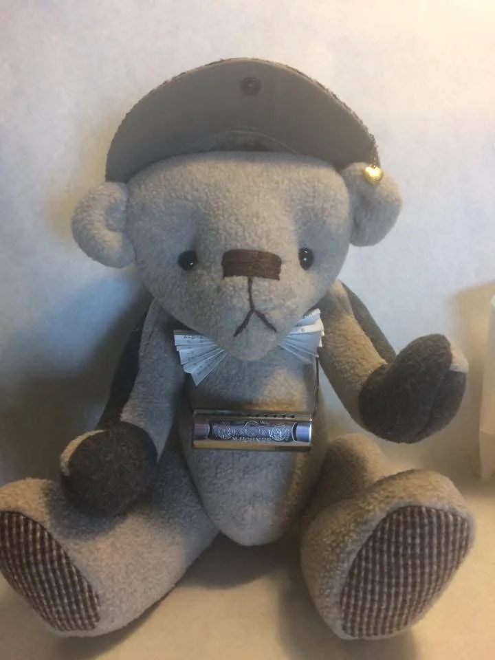 The Memory Bear Deluxe is a personalized, handcrafted bear made from your loved one's cherished clothing or fabrics. Featuring custom touches like a hat, harmonica, or glasses, each bear is designed to preserve their memory in a meaningful way. A truly unique keepsake, the Memory Bear Deluxe offers comfort and a lasting connection to those you've lost.
